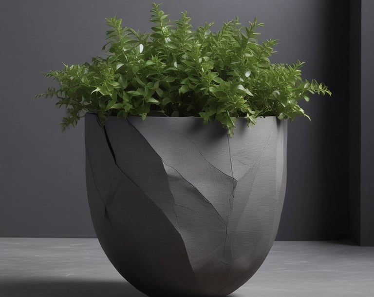 Each vessel is designed as an outer planter meant to hold a standard inner potted plant, allowing you to change plants over time without disturbing the artwork.